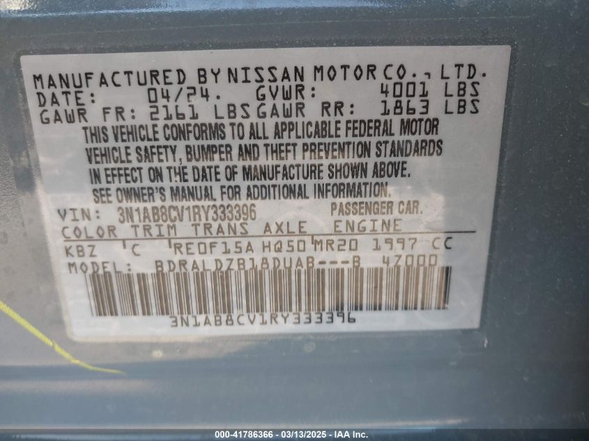 2024 NISSAN SENTRA 2024 Gasoline, 2.0, Front wheel drive, VIN - 3N1AB8CV1RY****** from the USA
