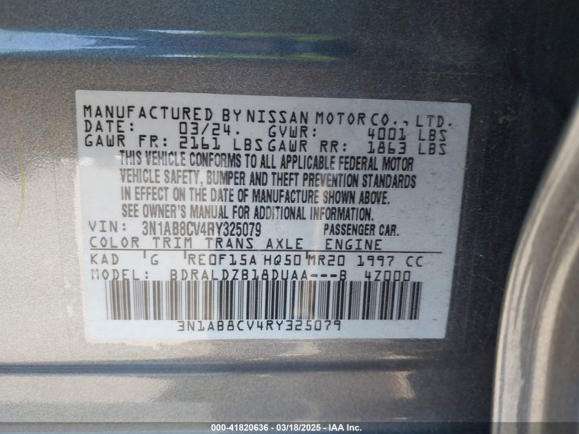 Color GrayCylinders 4Drive Front wheel driveVIN 3N1AB8CV4RY******State Run & Drive VerifiedDamage Front right