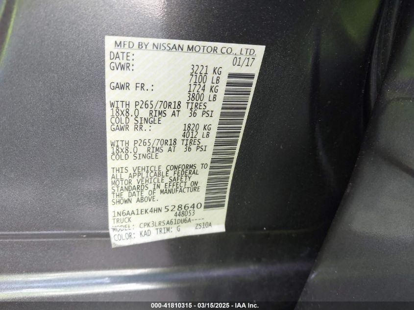 2017 NISSAN TITAN 2017 Gasoline, 5.6, Unknown, VIN - 1N6AA1EK4HN****** from the USA
