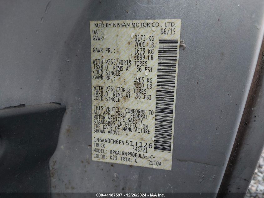 2015 NISSAN TITAN 2015 Gasoline, 5.6, Unknown, VIN - 1N6AA0CH6FN****** from the USA