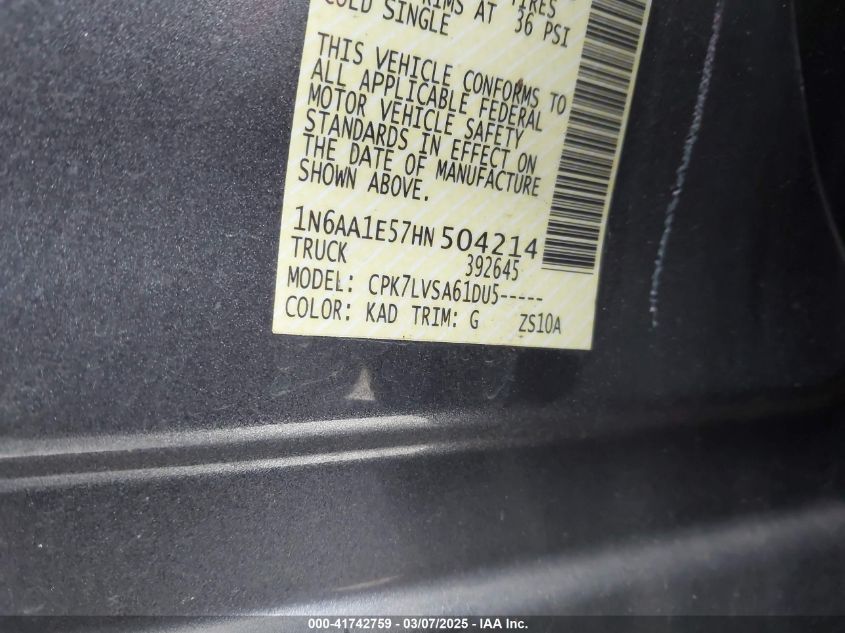 Color GrayCylinders 8Drive Full driveVIN 1N6AA1E57HN******State Run & Drive VerifiedDamage Front or back AutoRIA