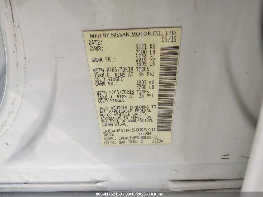 2015 NISSAN TITAN 2015 Gasoline, 5.6, Unknown, VIN - 1N6BA0ED3FN****** from the USA