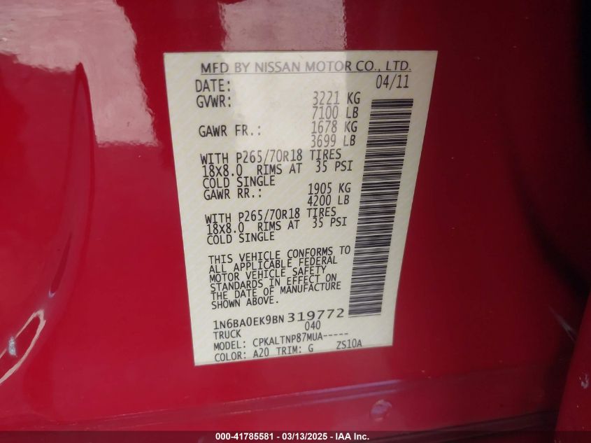 2011 NISSAN TITAN 2011 Gasoline, 5.6, Unknown, VIN - 1N6BA0EK9BN****** from the USA