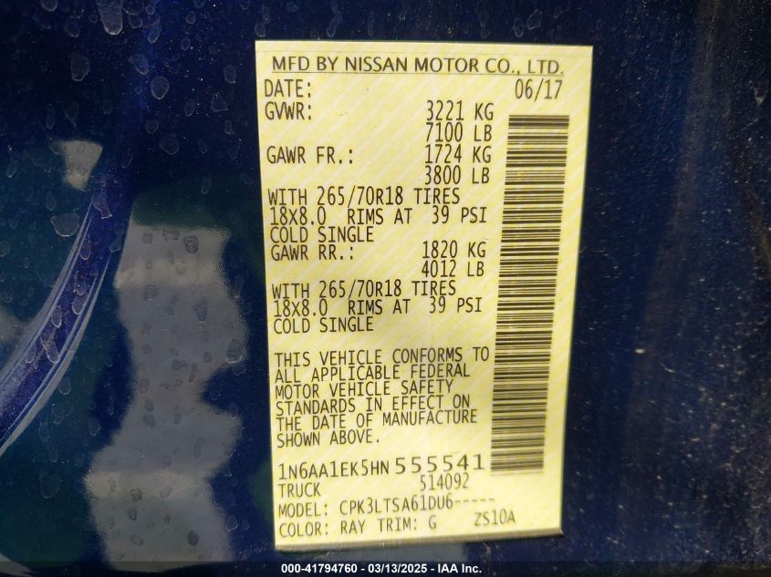 2017 NISSAN TITAN 2017 Gasoline, 5.6, Unknown, VIN - 1N6AA1EK5HN****** from the USA