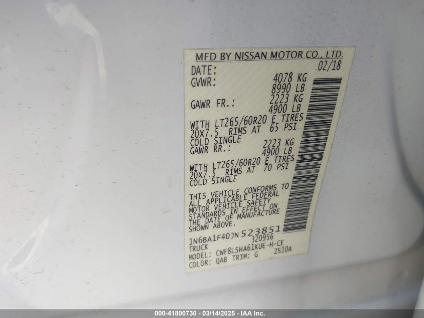 2018 NISSAN TITAN 2018 Diesel, 5.0, Full drive, VIN - 1N6BA1F40JN****** from the USA