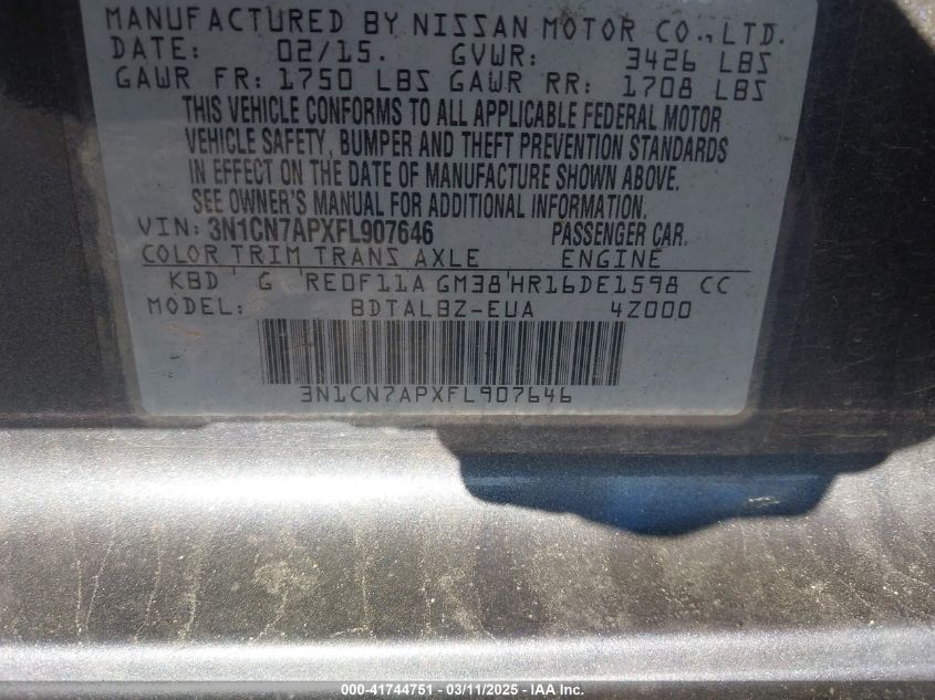 Color GrayCylinders 4Drive Front wheel driveVIN 3N1CN7APXFL******State Run & Drive VerifiedDamage Front or back AutoRIA