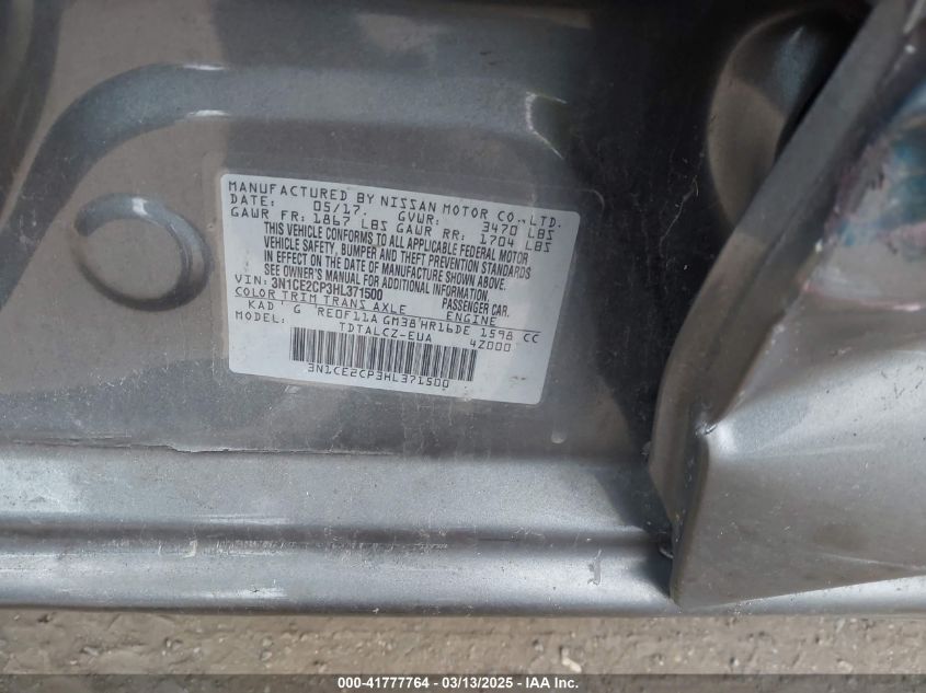 Color GrayCylinders 4Drive Front wheel driveVIN 3N1CE2CP3HL******State Run & Drive VerifiedDamage Front left AutoRIA