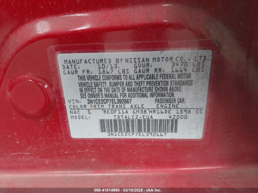 Color RedCylinders 4Drive Front wheel driveVIN 3N1CE2CP7EL******State Run & Drive VerifiedDamage Front or back AutoRIA