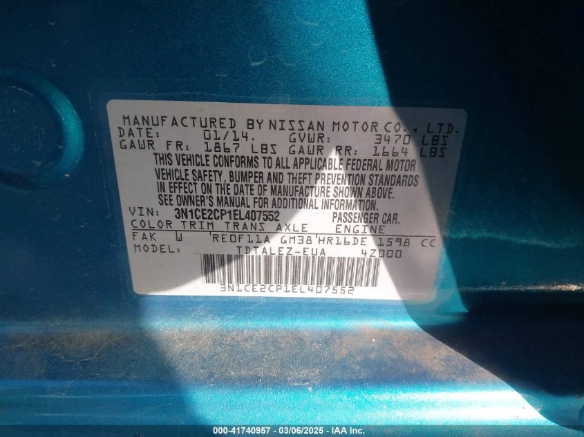 2014 NISSAN VERSA NOTE 2014 Gasoline, 1.6, Front wheel drive, VIN - 3N1CE2CP1EL****** from the USA