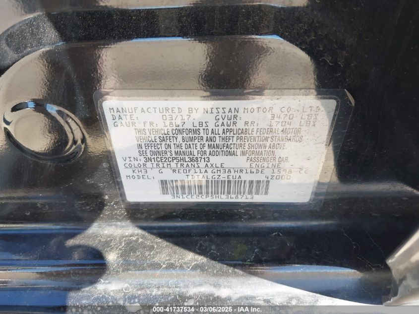 2017 NISSAN VERSA NOTE 2017 Gasoline, 1.6, Front wheel drive, VIN - 3N1CE2CP5HL****** from the USA