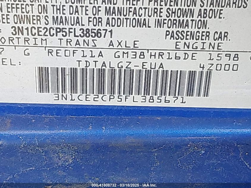 Color BlueCylinders 4Drive Front wheel driveVIN 3N1CE2CP5FL******State Run & Drive VerifiedDamage Back AutoRIA
