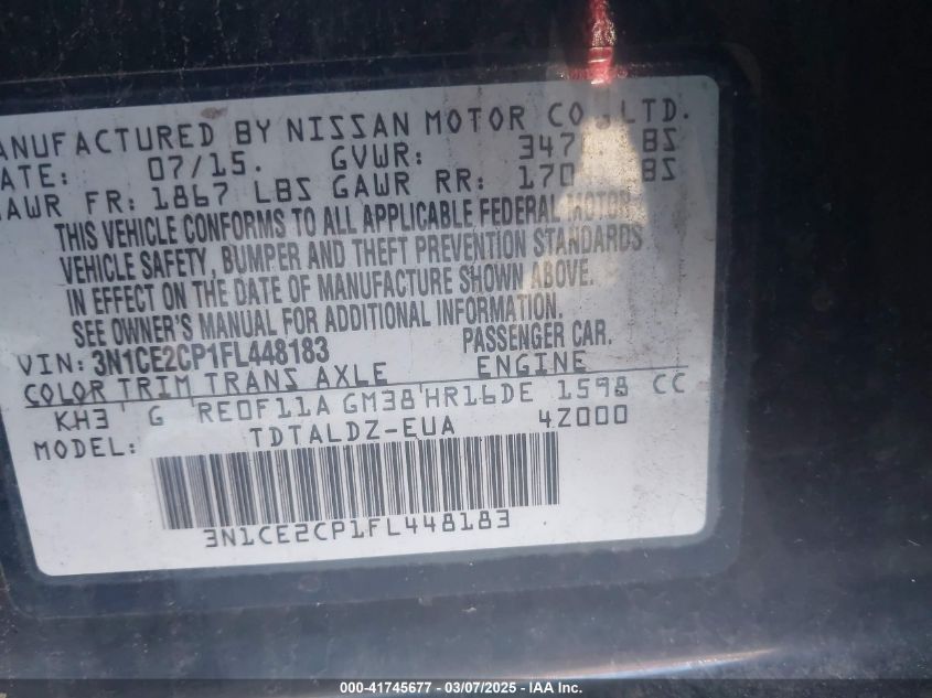 2015 NISSAN VERSA NOTE 2015 Gasoline, 1.6, Front wheel drive, VIN - 3N1CE2CP1FL****** from the USA