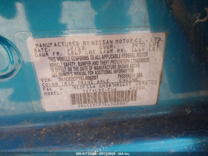 2014 NISSAN VERSA NOTE 2014 Gasoline, 1.6, Front wheel drive, VIN - 3N1CE2CP7EL****** from the USA