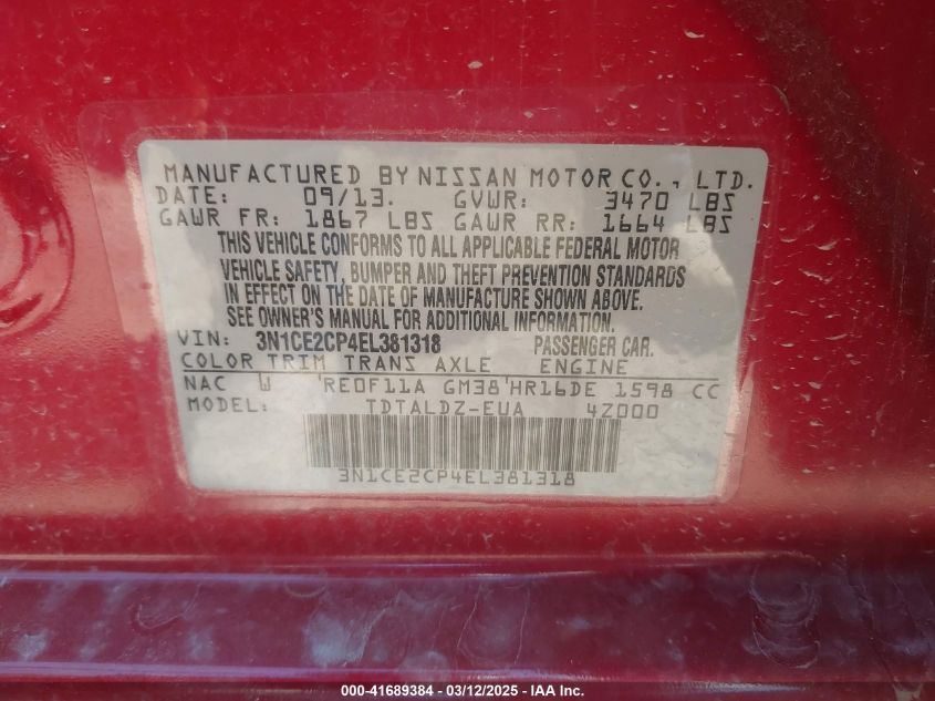 2014 NISSAN VERSA NOTE 2014 Gasoline, 1.6, Front wheel drive, VIN - 3N1CE2CP4EL****** from the USA