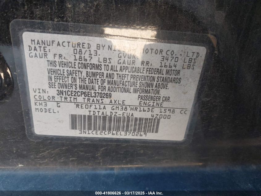 2014 NISSAN VERSA NOTE 2014 Gasoline, 1.6, Front wheel drive, VIN - 3N1CE2CP6EL****** from the USA