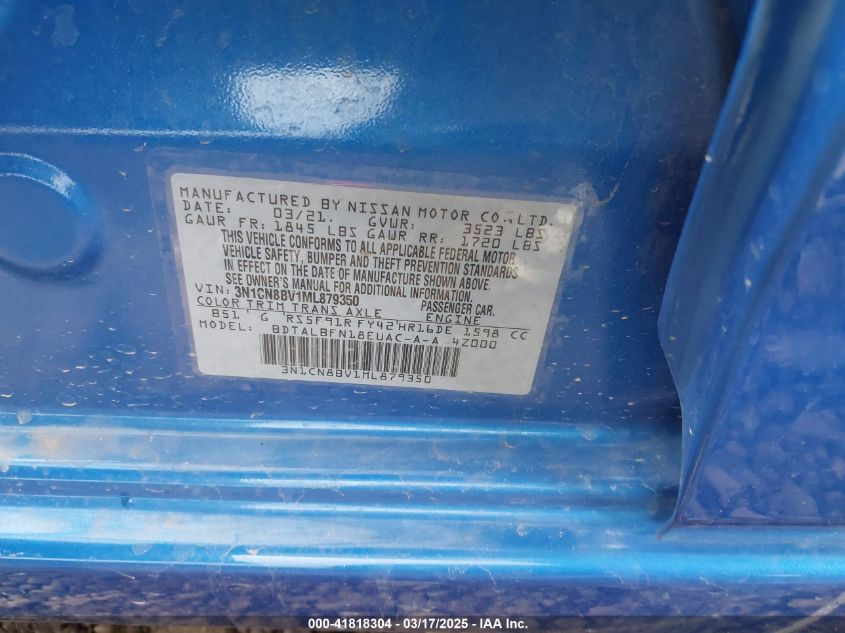 Color BlueCylinders 4Drive Front wheel driveVIN 3N1CN8BV1ML******State Run & Drive VerifiedDamage Front or back AutoRIA