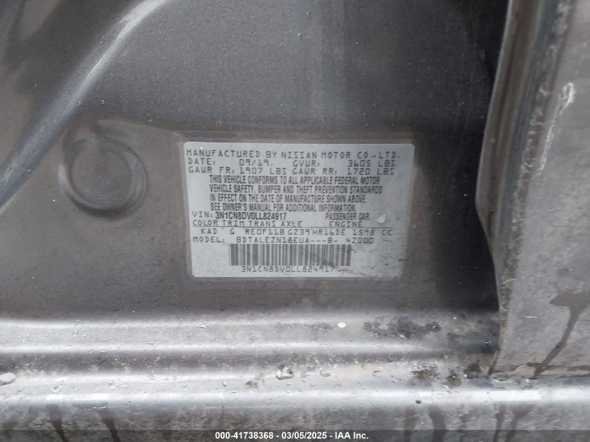 Color GrayCylinders 4Drive Front wheel driveVIN 3N1CN8DV0LL******State Run & Drive VerifiedDamage Front or backAuction date 2025-03-26 AutoRIA