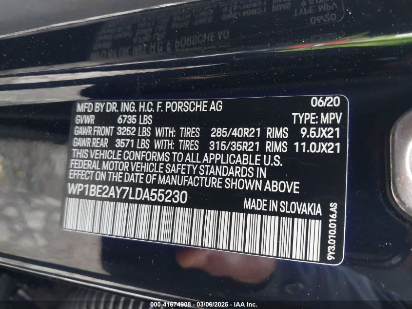 2020 PORSCHE CAYENNE 2020 Hybrid, 3.0, Full drive, VIN - WP1BE2AY7LD****** from the USA