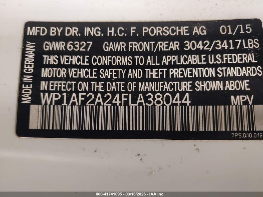 2015 PORSCHE CAYENNE 2015 Diesel, 3.0, Full drive, VIN - WP1AF2A24FL****** from the USA
