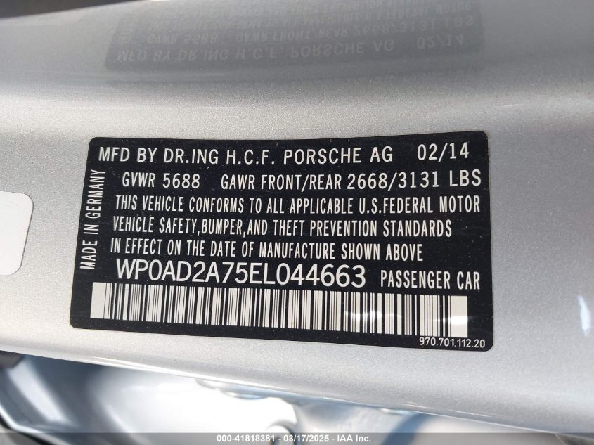 Color GrayCylinders 6Drive Rear wheel driveVIN WP0AD2A75EL******State Run & Drive VerifiedDamage Back AutoRIA