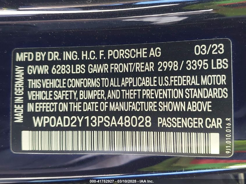 Color BlackDrive Full driveVIN WP0AD2Y13PS******State Run & Drive VerifiedDamage Left side AutoRIA