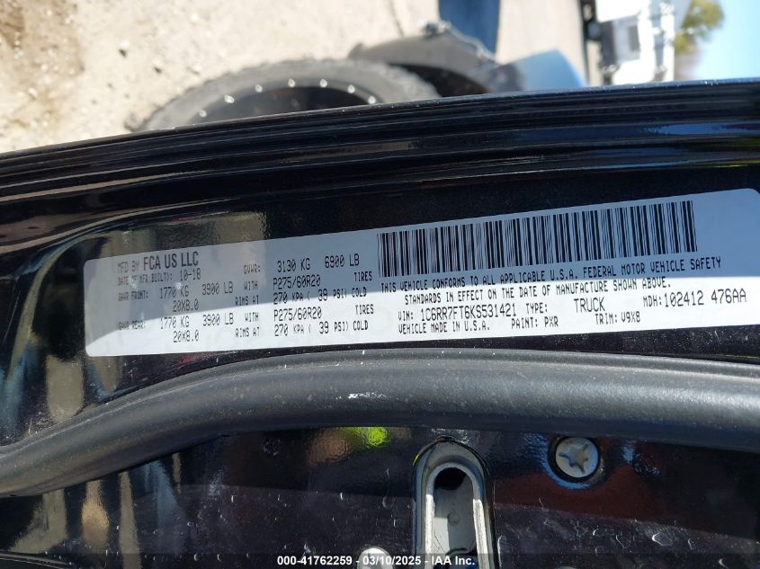 Color BlackCylinders 8Drive Full driveVIN 1C6RR7FT6KS******State Run & Drive VerifiedDamage Right side AutoRIA