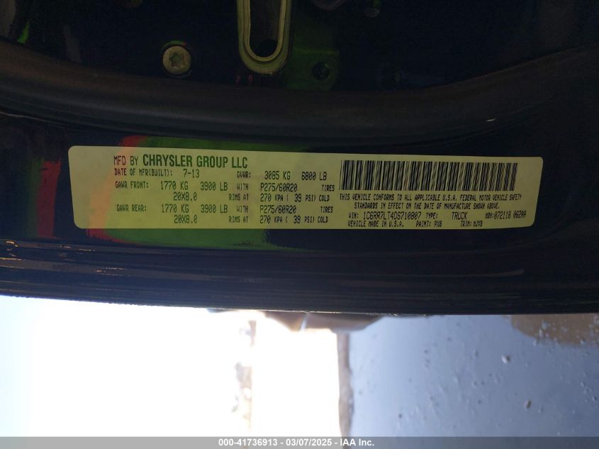 Color BlackCylinders 8Drive Full driveVIN 1C6RR7LT4DS******State Run & Drive VerifiedDamage Insignificant