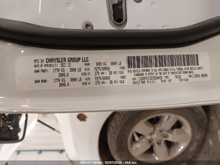 Color WhiteCylinders 8Drive Full driveVIN 1C6RR7GT3DS******State Run & Drive VerifiedDamage Front or back