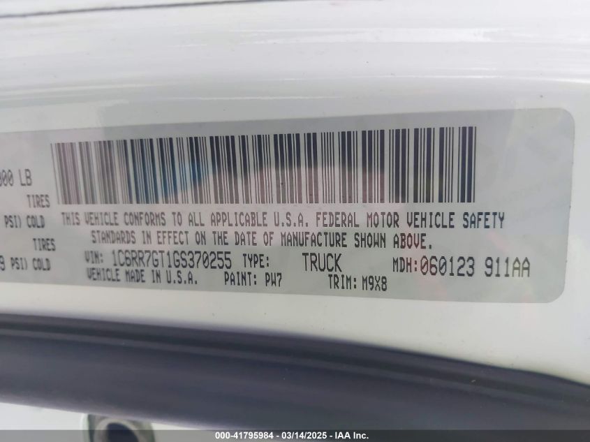 Color WhiteCylinders 8Drive Full driveVIN 1C6RR7GT1GS******State Run & Drive VerifiedDamage Front or back AutoRIA