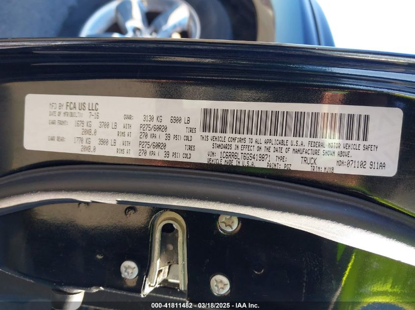 2016 RAM 1500 2016 Gasoline, 5.7, Unknown, VIN - 1C6RR6LT6GS****** from the USA