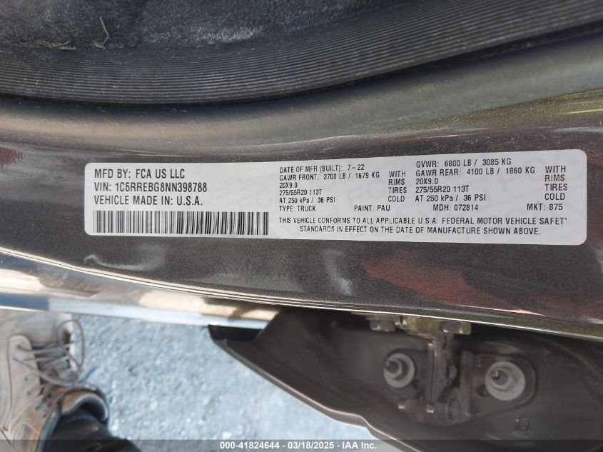 2022 RAM 1500 2022 Gasoline, 3.6, Unknown, VIN - 1C6RREBG8NN****** from the USA