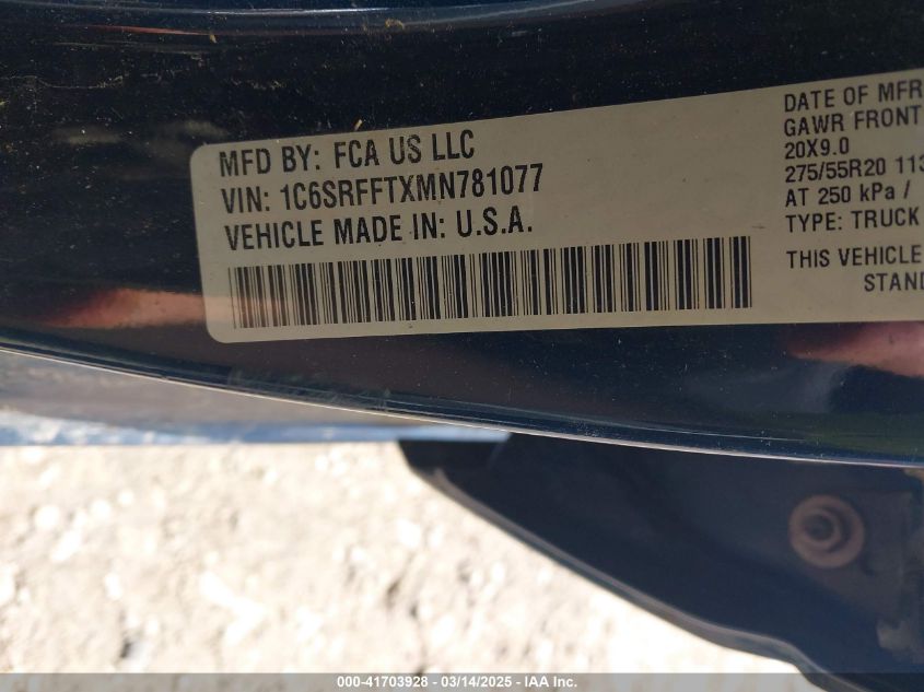 2021 RAM 1500 2021 Gasoline, 5.7, Full drive, VIN - 1C6SRFFTXMN****** from the USA