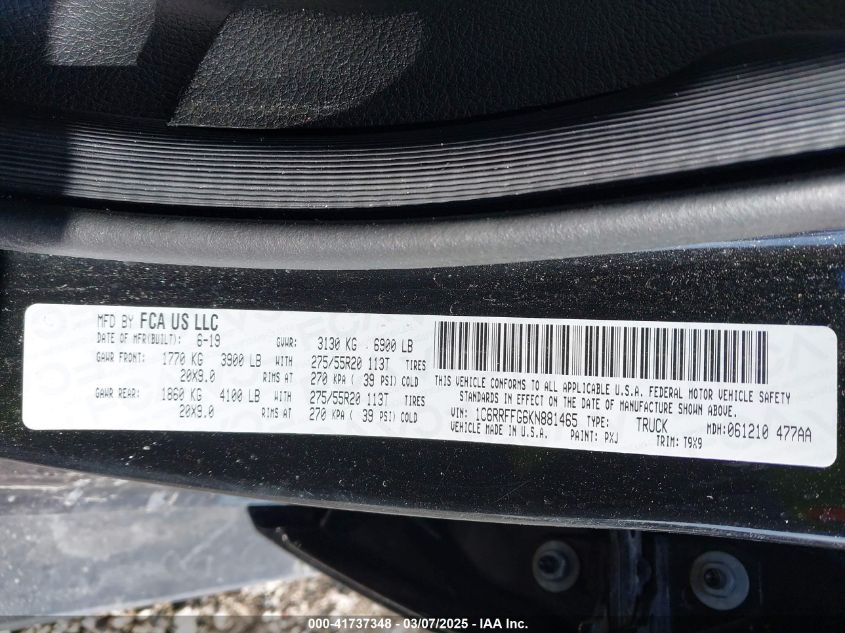 2019 RAM 1500 2019 Gasoline, 3.6, Full drive, VIN - 1C6RRFFG6KN****** from the USA