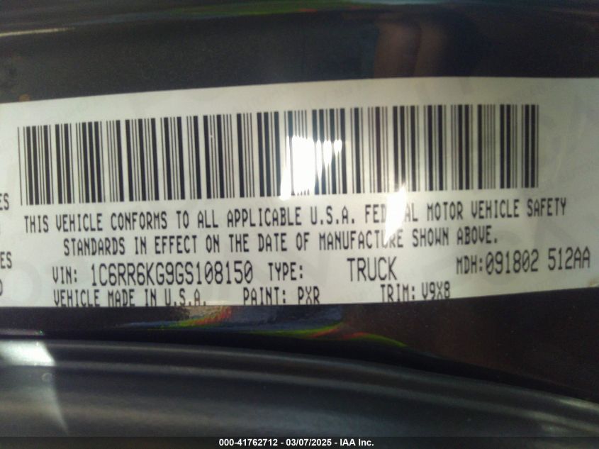 Color BlackCylinders 6Drive UnknownVIN 1C6RR6KG9GS******State Run & Drive VerifiedDamage MotorAuction date 2025-03-20 AutoRIA