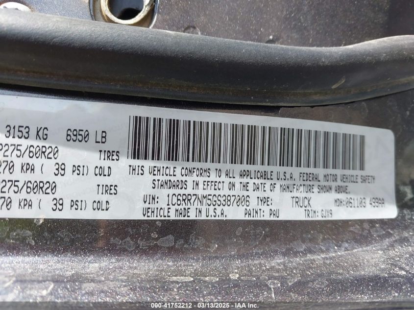 Color GrayCylinders 6Drive Full driveVIN 1C6RR7NM5GS******State Run & Drive VerifiedDamage Left side AutoRIA