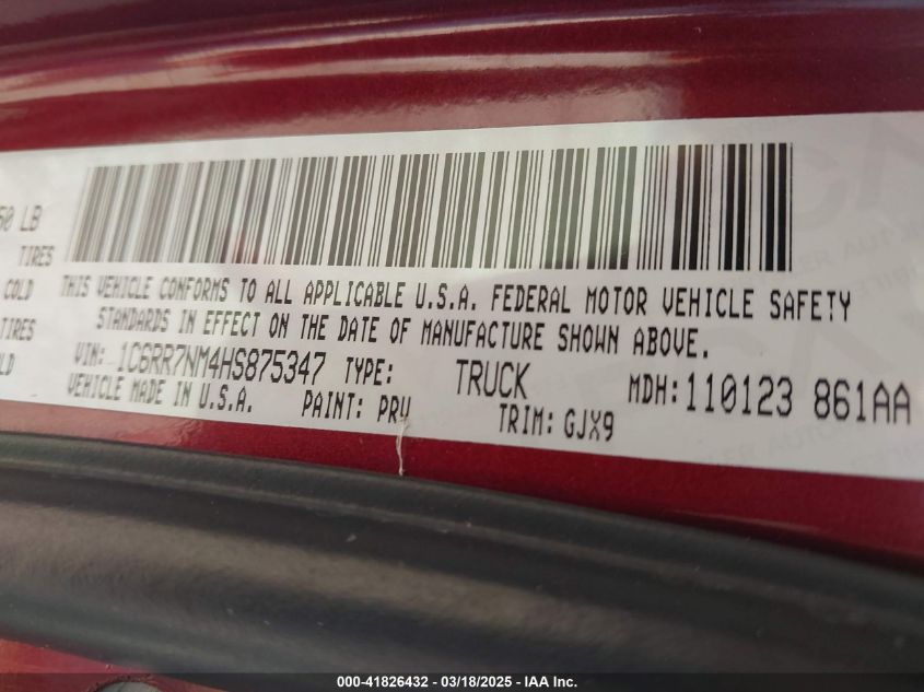 Color RedCylinders 6Drive Full driveVIN 1C6RR7NM4HS******State Run & Drive VerifiedDamage Front or back AutoRIA