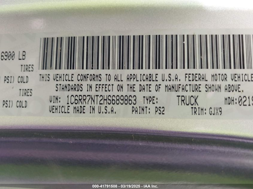 Color GrayCylinders 8Drive Full driveVIN 1C6RR7NT2HS******State Run & Drive VerifiedDamage Right side AutoRIA