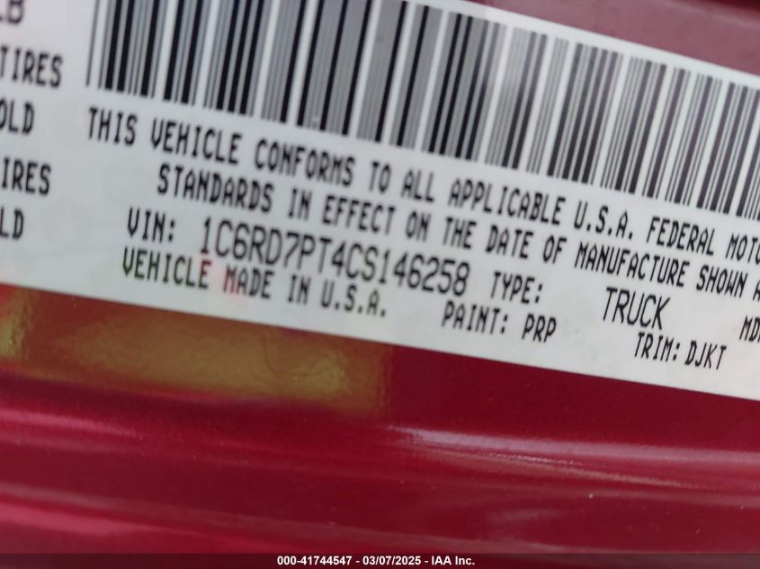 Color RedCylinders 8Drive Full driveVIN 1C6RD7PT4CS******State Run & Drive VerifiedDamage Front or back