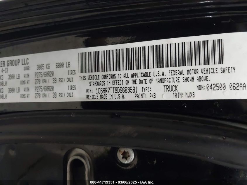 Color BlackCylinders 8Drive Full driveVIN 1C6RR7TT9DS******State Run & Drive VerifiedDamage Front or backAuction date 2025-03-26