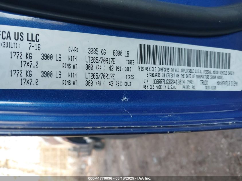 Color BlueCylinders 6Drive Full driveVIN 1C6RR7LG3GS******State Run & Drive VerifiedDamage Back AutoRIA