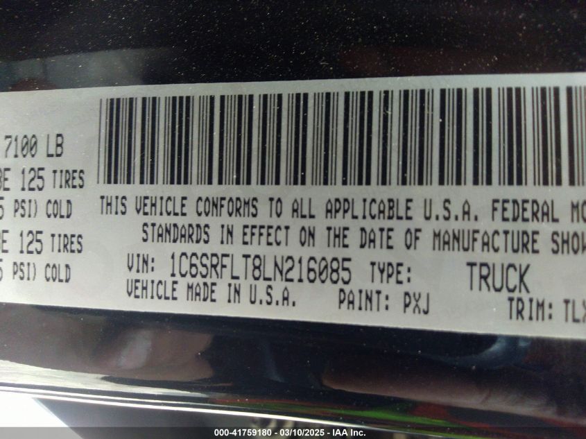 2020 RAM 1500 2020 Gasoline, 5.7, Full drive, VIN - 1C6SRFLT8LN****** from the USA