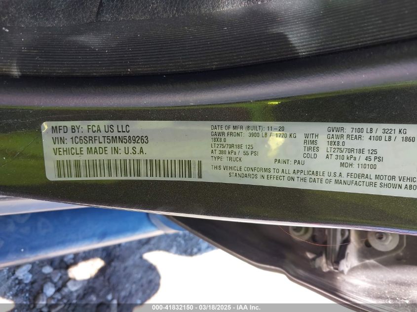 2021 RAM 1500 2021 Gasoline, 5.7, Full drive, VIN - 1C6SRFLT5MN****** from the USA