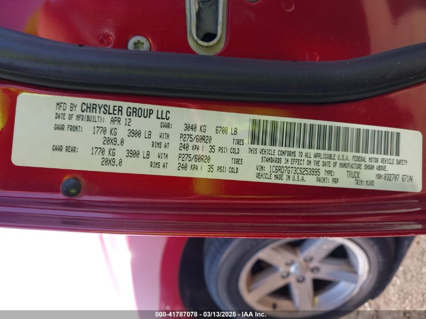 Color BurgundyCylinders 8Drive Full driveVIN 1C6RD7GT3CS******State Run & Drive VerifiedDamage Front or back