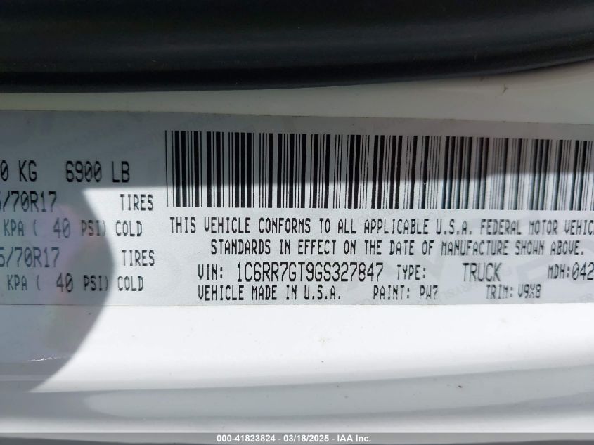 Color WhiteCylinders 8Drive Full driveVIN 1C6RR7GT9GS******State Run & Drive VerifiedDamage All over the car AutoRIA