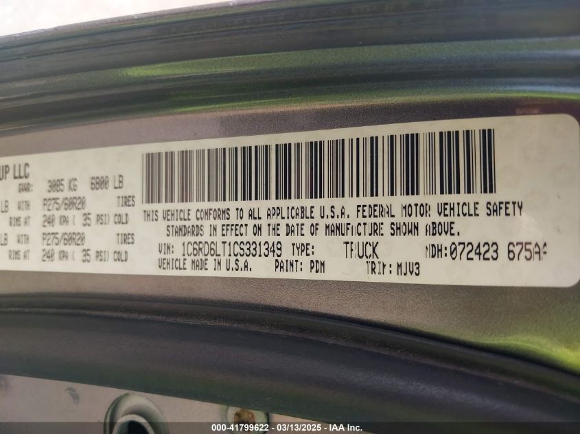 Color GrayCylinders 8Drive UnknownVIN 1C6RD6LT1CS******State Run & Drive VerifiedDamage Insignificant