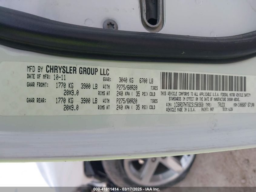 Color WhiteCylinders 8Drive Full driveVIN 1C6RD7HT6CS******State Run & Drive VerifiedDamage Front or back