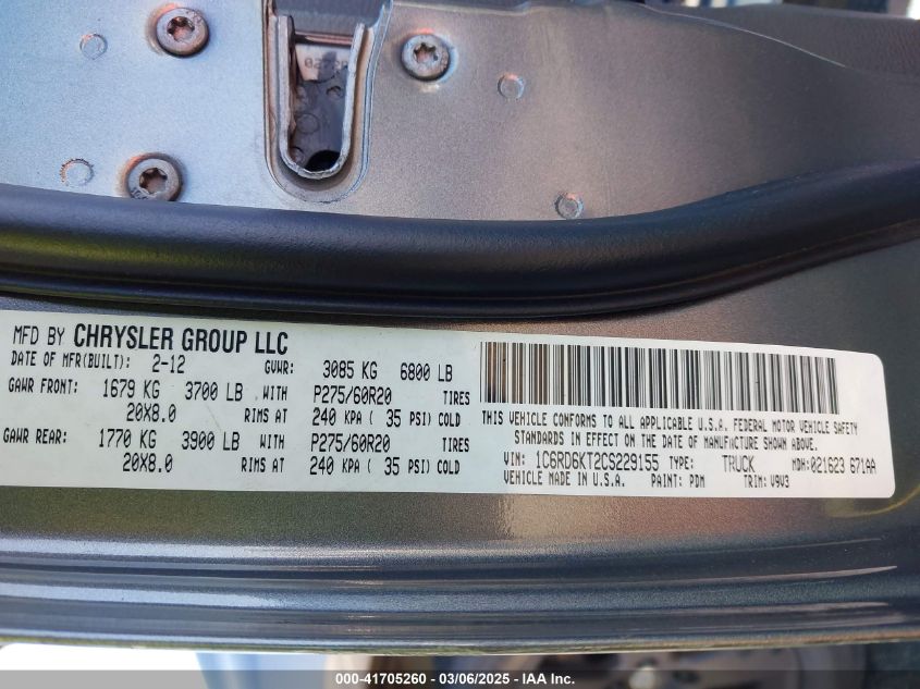 Color GrayCylinders 8Drive UnknownVIN 1C6RD6KT2CS******State Run & Drive VerifiedDamage Front right