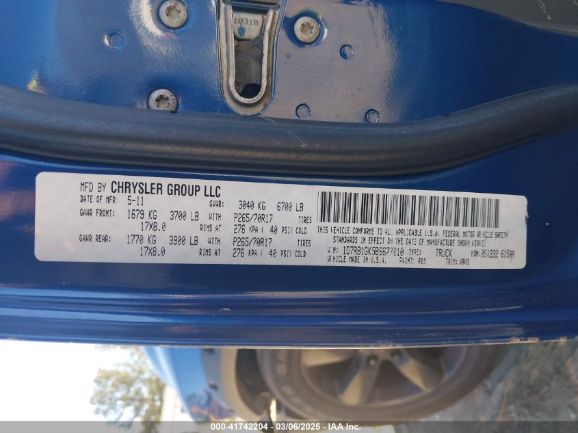 2011 RAM 1500 2011 Gasoline, 3.7, Unknown, VIN - 1D7RB1GK5BS****** from the USA