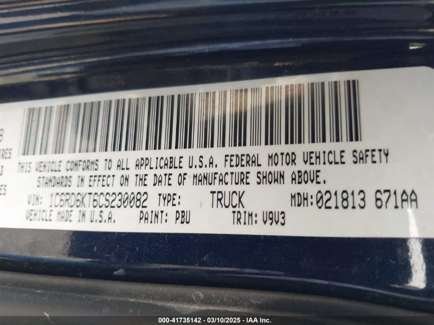 Color BlueCylinders 8Drive UnknownVIN 1C6RD6KT6CS******State Run & Drive VerifiedDamage Front and back