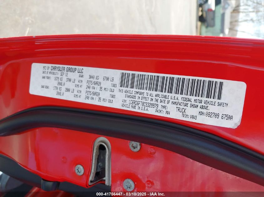 Color RedCylinders 8Drive UnknownVIN 1C6RD6FT8CS******State Run & Drive VerifiedDamage Rear rightAuction date 2025-03-26